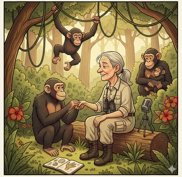 Jane Goodall’s story began with a curiosity that shaped history. At 26, she ventured into the wilds of Gombe with little more than a notebook and a dream, defying expectations to become the first to observe chimpanzees using tools—a discovery that reshaped our understanding of animal intelligence. Her work with the Jane Goodall Institute, founded to protect primates and their habitats, grew into a worldwide effort, inspiring millions to see themselves in nature’s mirror. Her gentle approach, naming chimps like David Greybeard, bridged the gap between species, teaching us empathy starts with understanding.