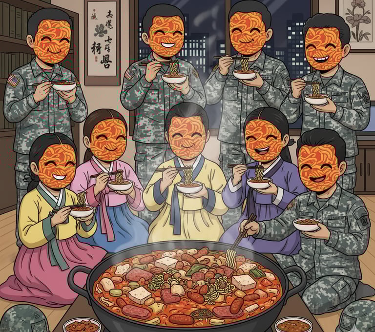 Imagine a family in Uijeongbu, 1955: Father, a former conscript, trades labor at the base for a can of Spam. Mother ferments cabbage scraps into kimchi. Together, over a butane stove, they create a bubbling cauldron that fills the air with savory promise. For children scarred by air raids, the first slurp—salty, spicy, chewy with noodles—tasted like normalcy returning. It was hope in edible form: a reminder that even in division's shadow, communities could rebuild, innovate, and share.